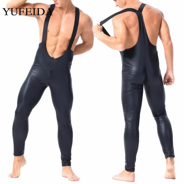 Clubwear For Men - Yizyif men's wet look patent leather leotard bodysuit zipper catsuit clubwear costume.