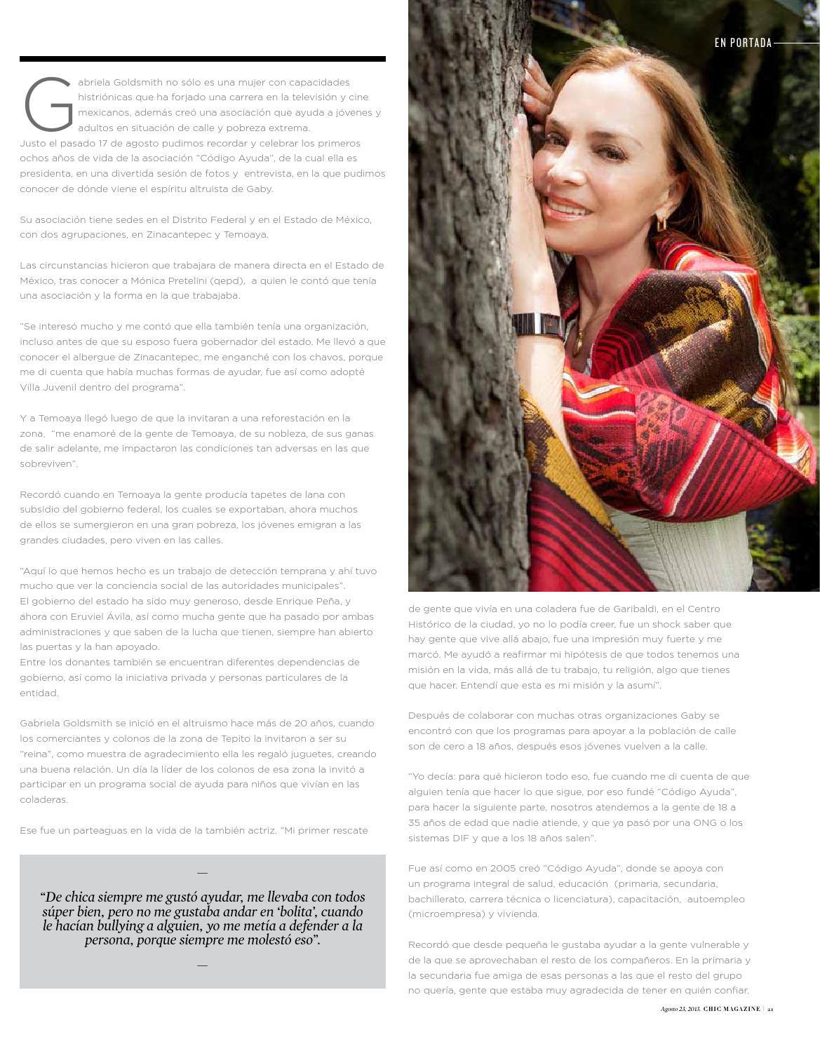 Tras Dejar Televisa Gabriela Goldsmith Se Registra Como Precandidata De Morena En Naucalpan Tribuna Gabriela goldsmith (born ruth gabriela goldschmied guasch on september 11, 1963 in mexico city, mexico) is a mexican actress, former beauty queen, teacher and doctor in innovation and social responsibility and president of two civil society organizations.
