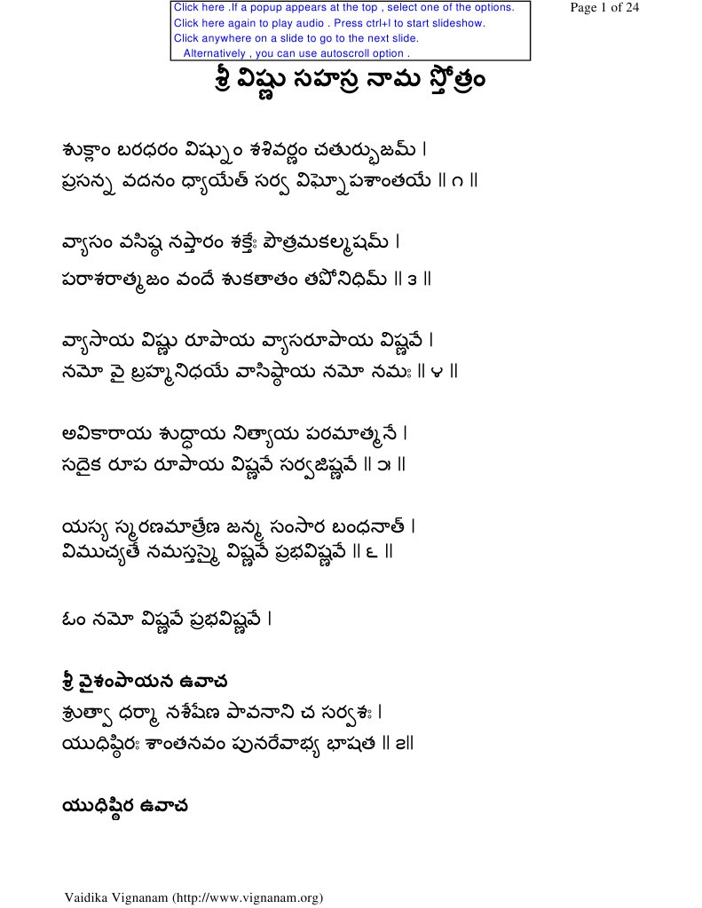 Vishnu Sahasranamam With Telugu Lyrics Bhakthi Channel The Divine Youtube Om shuklam bhardharam vishnu shashi varnam chatur bhujam parshan wadnam vyah sarwa vighno pashante shari ram ram rameti rame mano rame shahashatar namat tulyam ram nam warananne shari ram ram rameti rame.