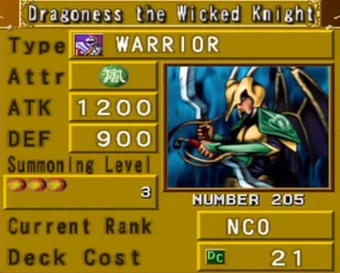Dragoness The Wicked Knight Is a strategic trading card game in two players duel each other using a variety of monster, spell, and trap cards to defeat their opponent's monsters and be the first to drop the other's life points to 0.